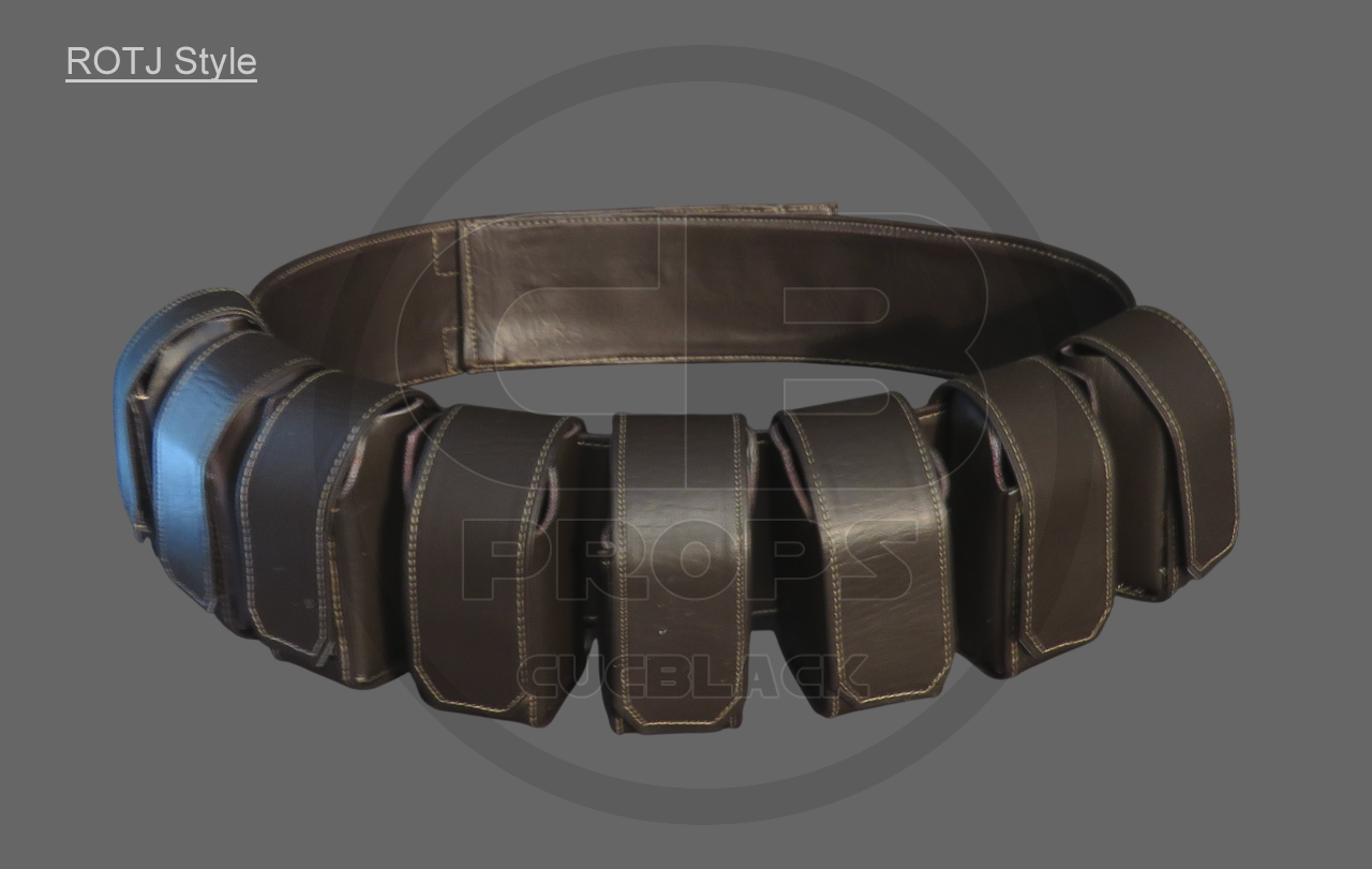 ROTJ: 8 pouches, 6 eyelets belt, brown color, beige stitching.