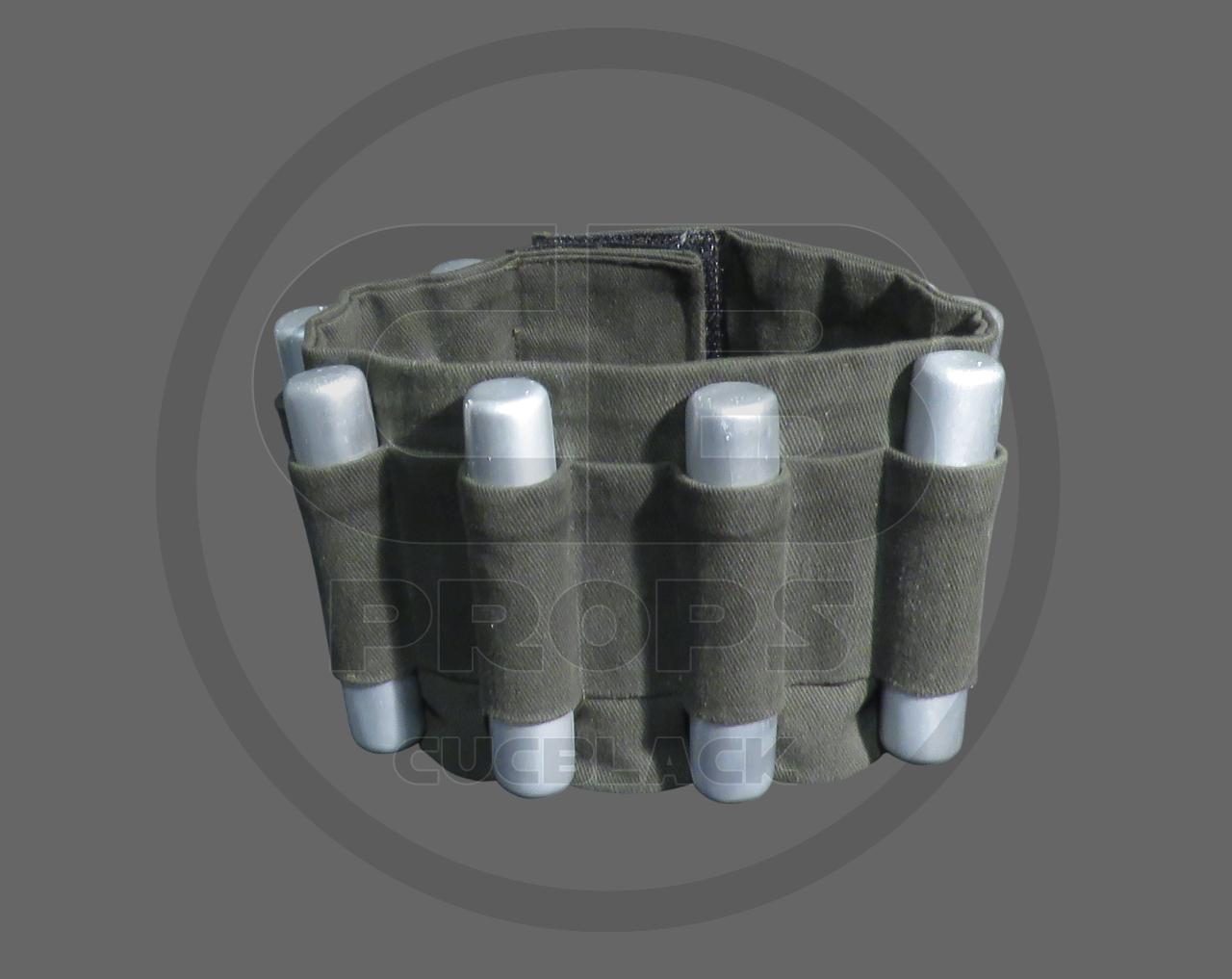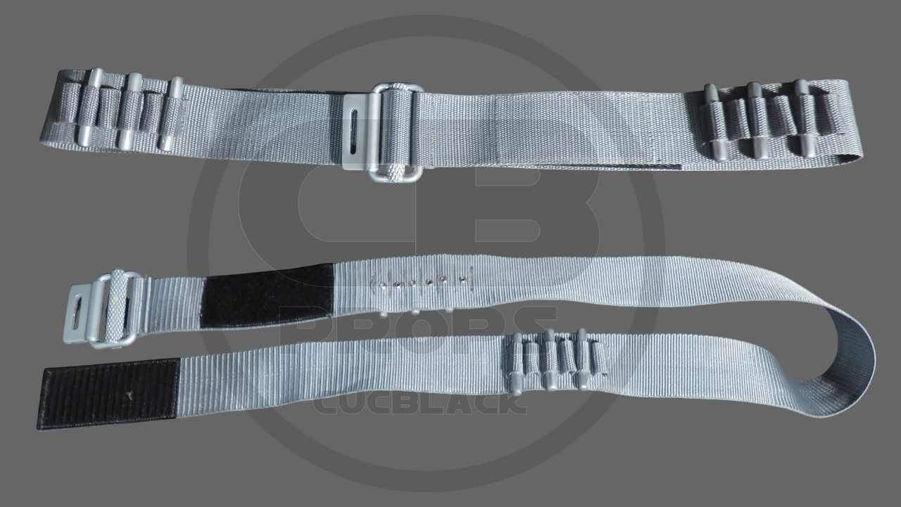 Made of gray webbing 5cm (2″) wide.